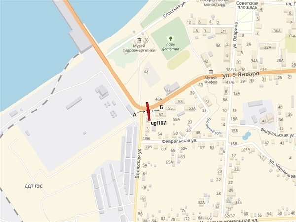9-го Января ул., съезд с плотины через р.Волга, ГЭС, справа при движении в центр