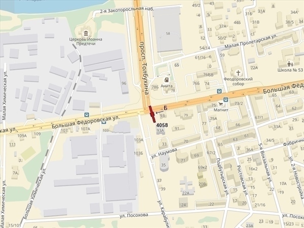 Б.Федоровская ул., поворот на пр-т Толбухина, к мосту через р.Которосль, слева при движении от Московского пр-та