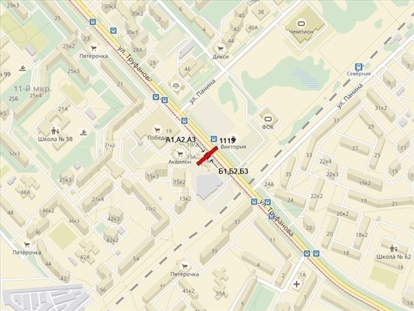Труфанова ул., 19, 100м до ж/д переезда, у ТЦ "Аквилон", справа при движении к пр-ту Дзержинского