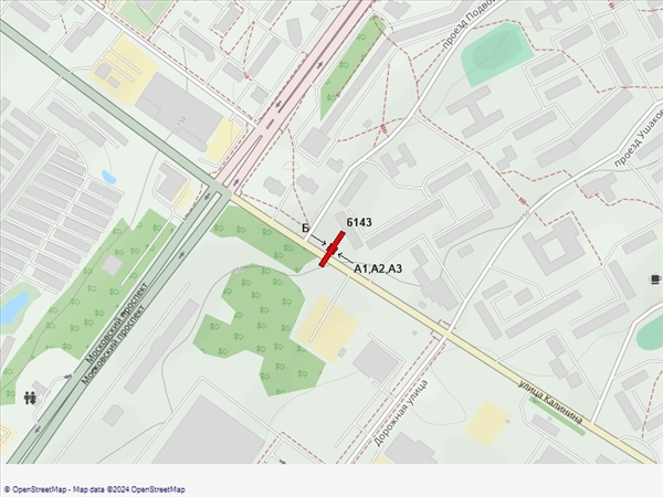Калинина ул., 5, 150м до пересечения с Московским пр-м, напротив ТРЦ "Вернисаж" и строительного гипермаркета "Лемана Про"