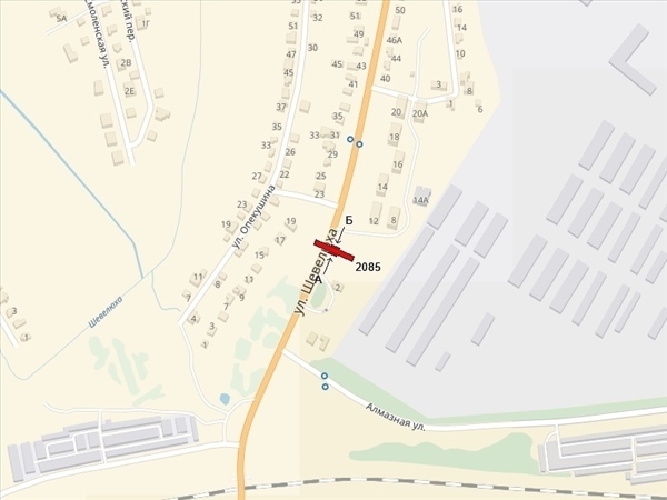 Шевелюха ул., 200м от пересечения с ул.Алмазной, напротив остановки, справа при движении из центра
