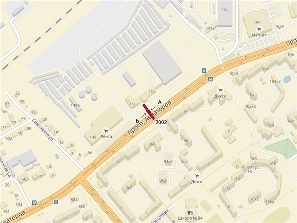 Авиаторов пр-т, 153, 50м до ТЦ"Космос", гипермаркета "Лента" и автостанции "Заволжье", справа при движении в центр