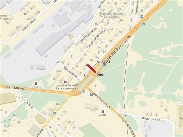 Авиаторов пр-т, 45, 90м до поворота на ул.Урочская, справа при движении в центр