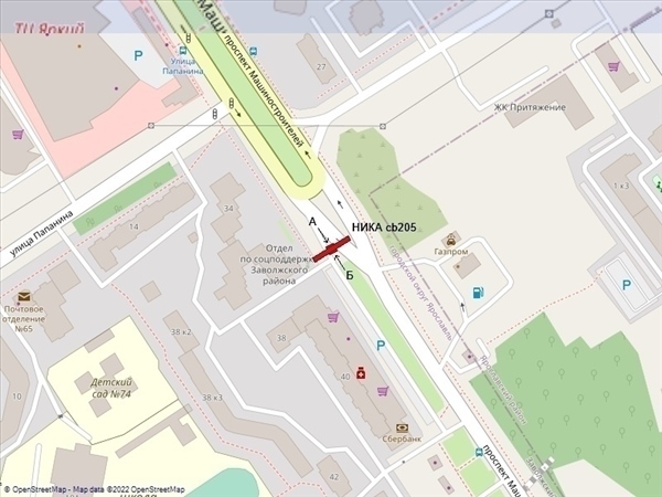 Машиностроителей пр-т, 40, 150м от ул. Папанина, напротив АЗС"Газпромнефть", справа при движении из центра, к гипермаркету "Глобус" (сторона Б - 150м доТРЦ "Яркий")