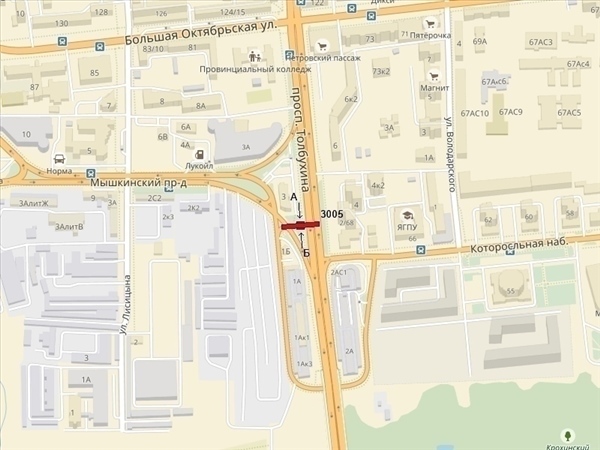 Толбухина пр-т, 3, 50м до моста, при движении из центра