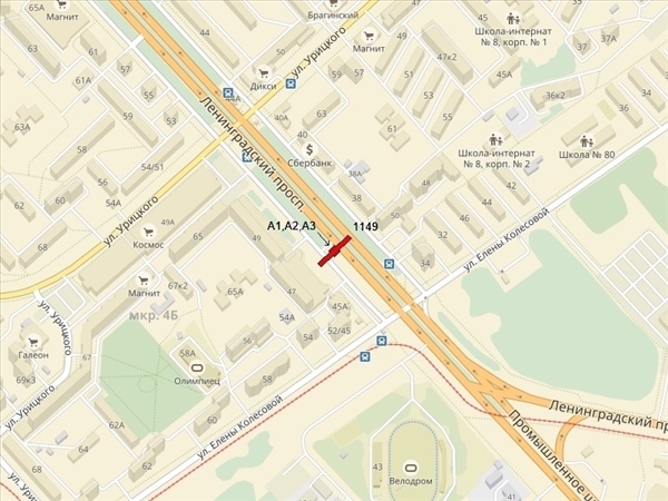 Ленинградский пр-т, 47, 200м от ТЦ "Космос", 150м до пересечения с ул. Е.Колесовой, справа при движении в центр