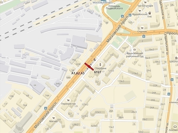 Московский пр-т, 117, 250м до пересечения с пр-том Фрунзе, ж/д вокзала "Ярославль-Московский", справа при движении в центр