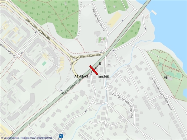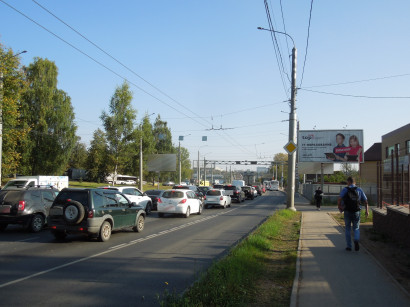Магистральная ул., д.32 по ул.Пантусовская, въезд на Волжский мост, в районе транспортной развязки с ул.Е.Ермакова (сторона Б - 600м до ТРЦ"РИО"), справа при движении в центр