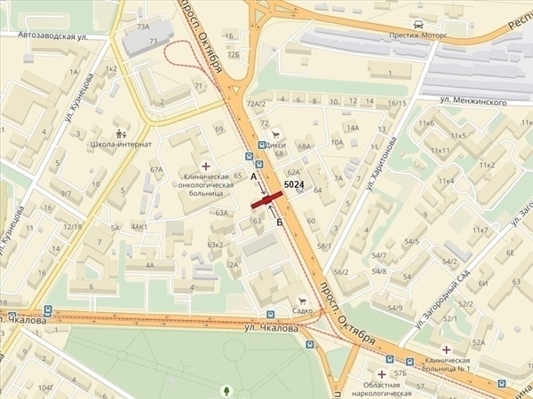 Октября пр-т, 63, 250м до пересечения с ул. Чкалова, справа при движении в центр