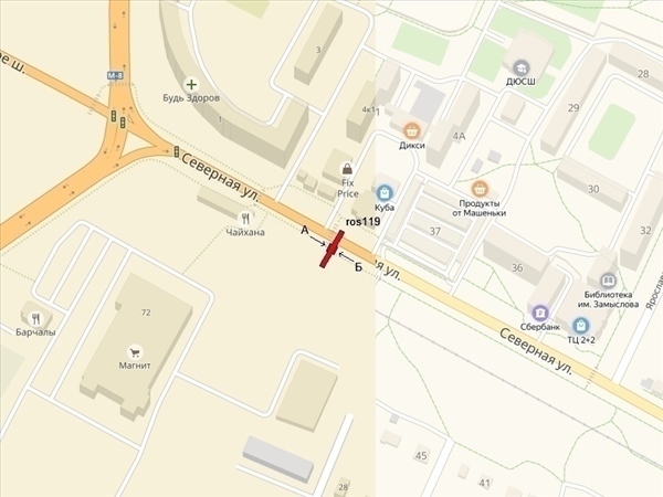 Северная ул., 40, 200м от Ярославского шоссе (Трасса М-8 Москва-Холмогоры), в районе гипермаркета "Магнит", справа при движении в город