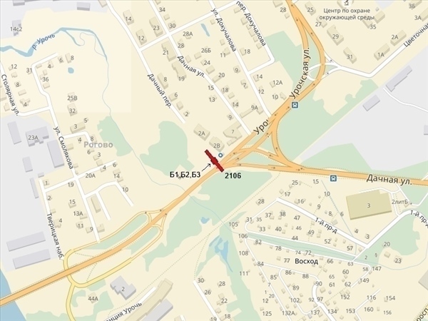 Урочская ул., пересечение с ул. Дачной, слева при движении из центра