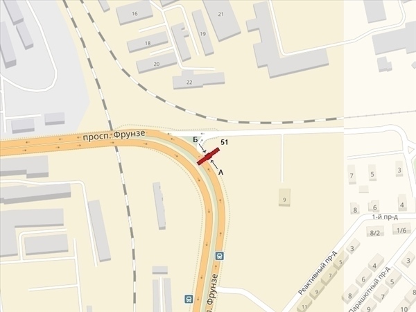 Фрунзе пр-т, 20м до поворота на ул.Пилотов, справа при движении в центр
