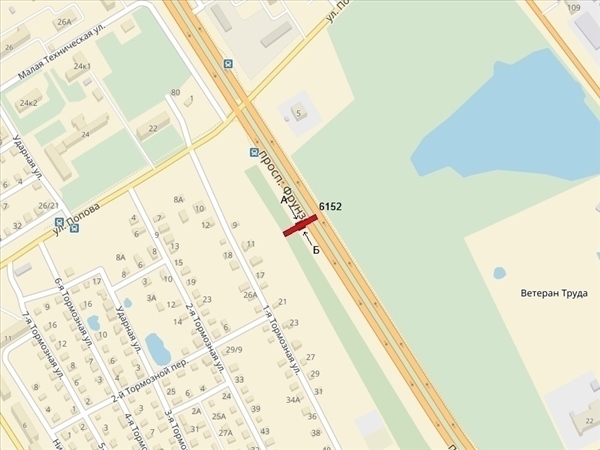 Фрунзе пр-т, 200м от пересечения с ул.Попова, справа при движении из центра