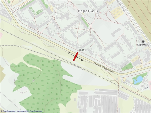 Революции пр-т, напротив д.16, справа при движении к ул.9 мая