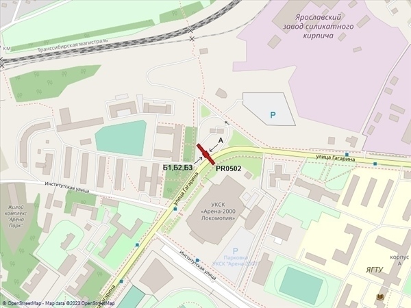 Гагарина ул., 6, разделительный остров, напростив выезда с территории СК"Арена 2000 "Локомотив", справа при движении от Московского пр-та