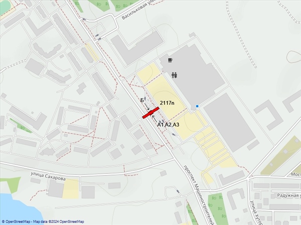 Машиностроителей пр-т, 150м от поворота на ул.Сахарова, у гипермаркетов "Глобус" и "Лемана Про", справа при движении к пр-ту Авиаторов
