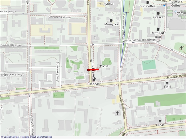 Победы ул., 53, 100м от ул.Большая Октябрьская, справа при движении в центр
