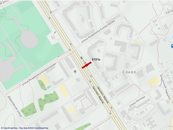 Фрунзе пр-кт, пересечение с ул.Колмогорова, слева при движении из центра
