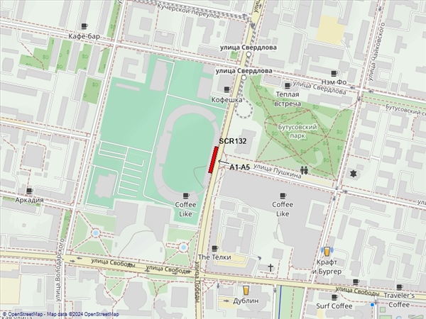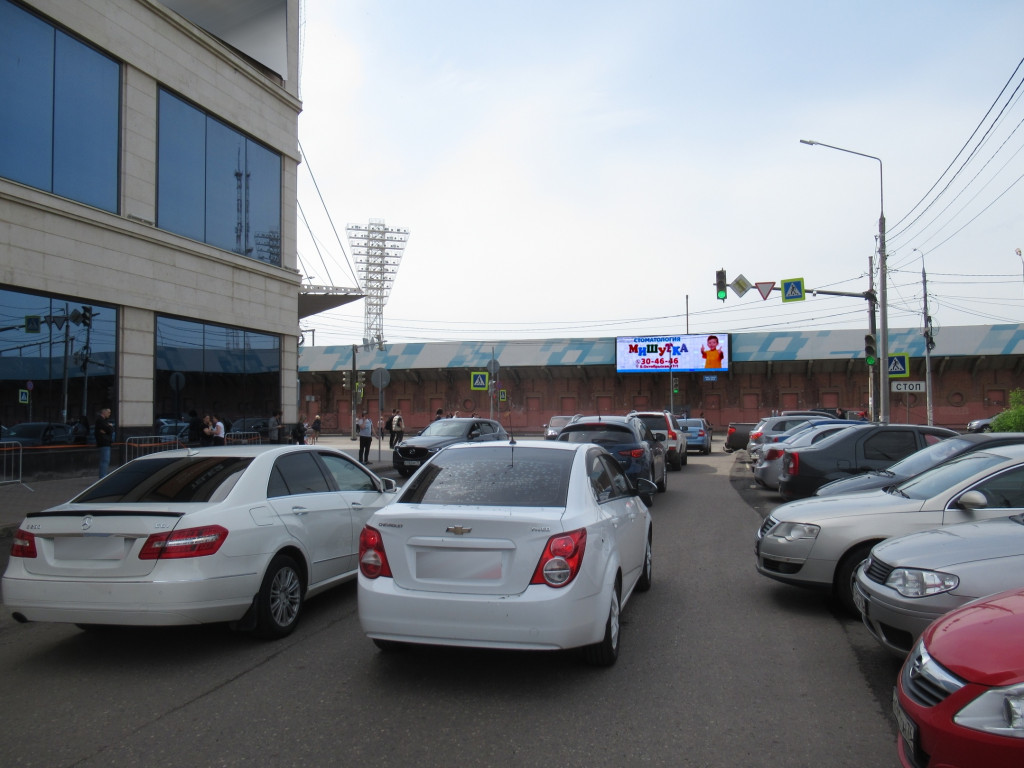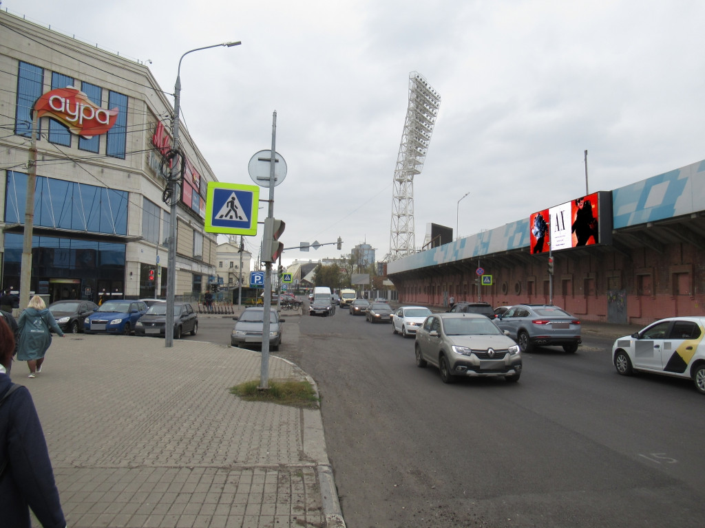 Победы ул., пересечение с ул.Пушкина, напротив ТРЦ"Аура", восточная трибуна СК"Шинник"