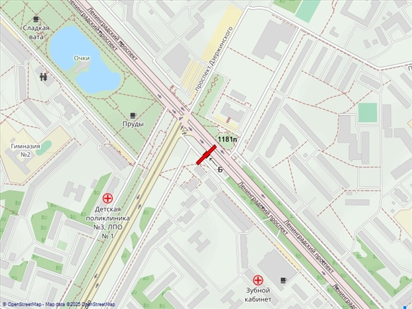 Ленинградский пр-т, пересечение с пр-том Дзержинского, слева при движении из центра