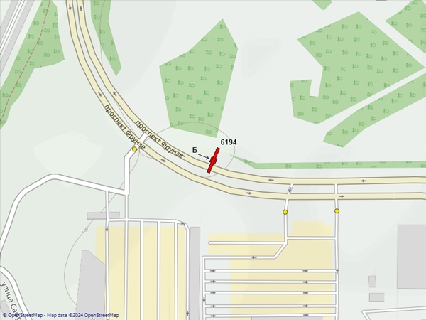 Фрунзе пр-т, напротив д.31, гипермаркет"МЕТРО", 100м от поворота к гипермаркету"Аксон", слева при движении из центра