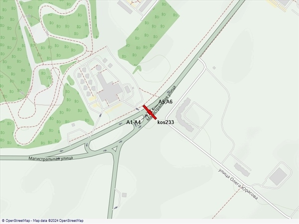 Магистральная ул., 40, разделительный остров, стороны А1-А4 - слева при движении в центр, А5,6 - при движении из центра