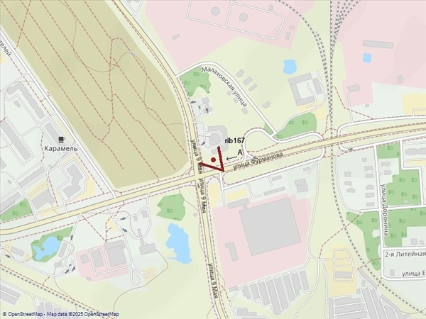 Фурманова ул., 50м до пересечения с ул. 9 Мая, съезд с путепровода, справа при движении из центра