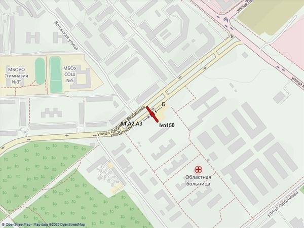 Любимова ул., 1, Областная Клиническая Больница, справа при движении к Кохоскому шоссе, ТРЦ"Евролэнд" и ТЦ"РИО"